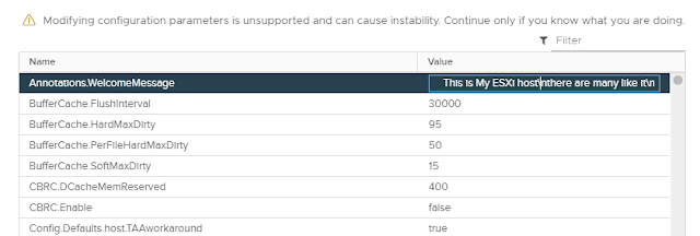 Formatting Annotations.WelcomeMessage for the ESXi host so its not one long line 7.0